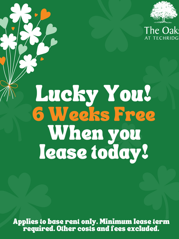 Convenience and comfort extend to these north Austin, TX apartments. Come home to an expansive floor plan designed with premium finishes, including distinct wood-style flooring throughout the common area. Gourmet kitchens, beaming under modern track lighting, feature black appliances, dark wood cabinets and granite countertops. Choose a home with amenities, such as full-size laundry appliances and pool views, for an upgraded living experience. Learn more about these apartments for rent in Pflugerville when you tour The Oaks at Techridge.